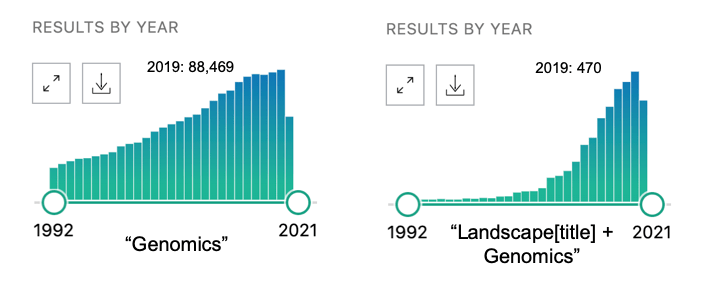 Now that biologists can generate millions of data points from a single sample, it is often assumed that fundamental insights will follow. If one takes the beginning of the Human Genome Project(1990) as the start of the genomics era, we are now 30 years in and still at the stage of large-scale stamp accumulation. The sheer size of a new data set remains one of the major selling points for new papers, and significant time and resources continue to be devoted to the generation of new biological data. Whereas one might have wished for early quantitative breakthroughs from all of this new data, the most obvious short-term effect of genomic technology has been to turn biologists from artisinal into industrial stamp collectors. The fact that the word “landscape” is a staple of high profile genomics papers reflects the degree to which data generation continues to be a primary focus of genomics research.